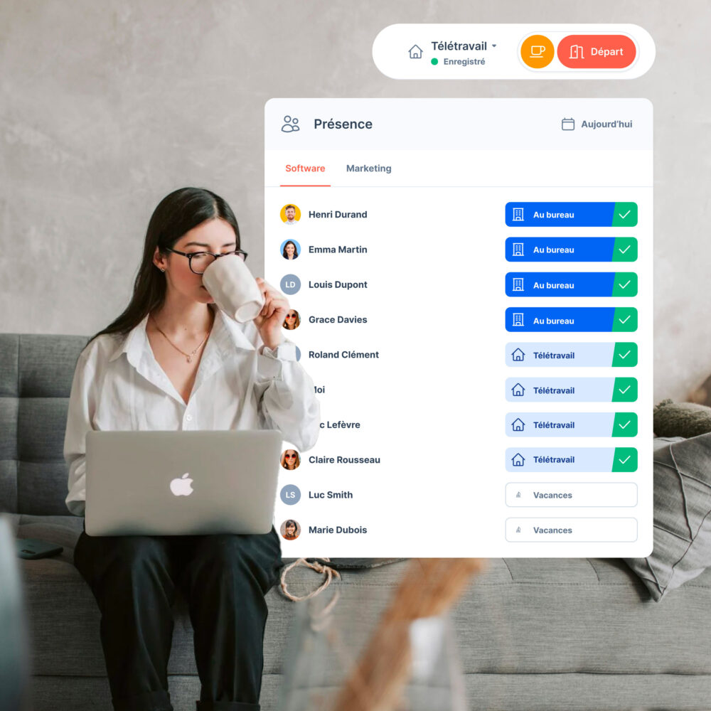 En un clic, les télétravailleurs commencent et terminent leur journée de travail à distance.